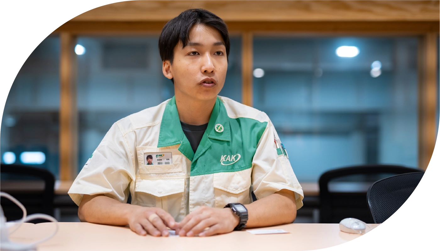 仕事を通して、社内外問わず人とのつながりが増えるのも魅力のひとつ。自由な雰囲気で、やってみたい改善も自分から提案しやすい環境です。ものづくりの知識は、日曜大工や私生活でも役立つ場面が多く、「欲しいものを自分でつくれる」楽しさに気づけます。